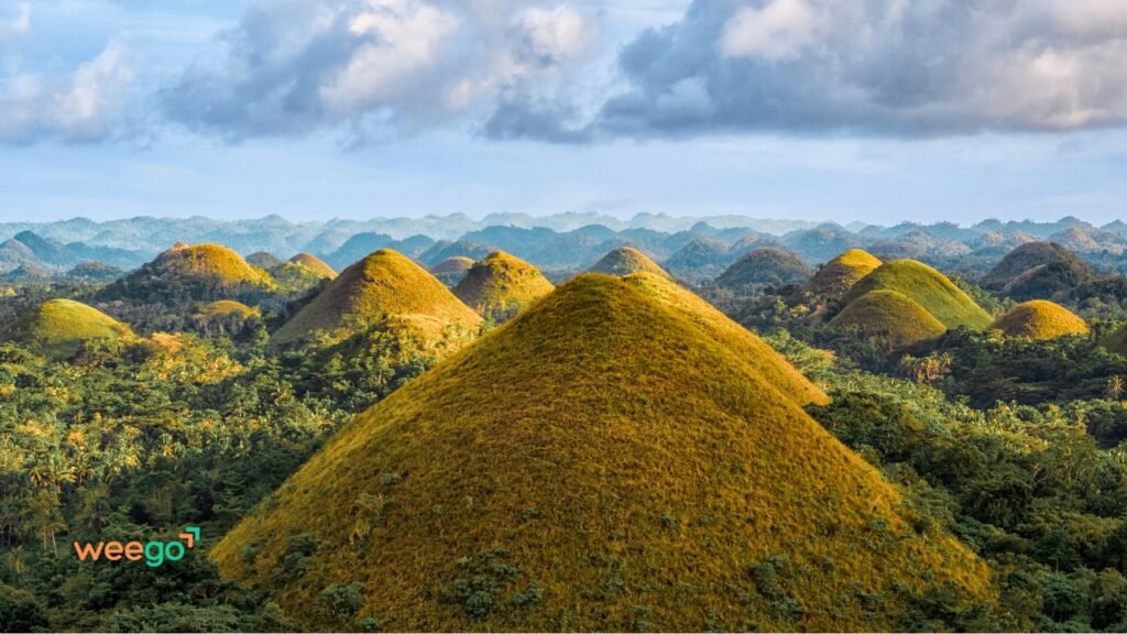 - Chocolate Hills – Over 1,200 cone-shaped hills that turn brown during the dry season.